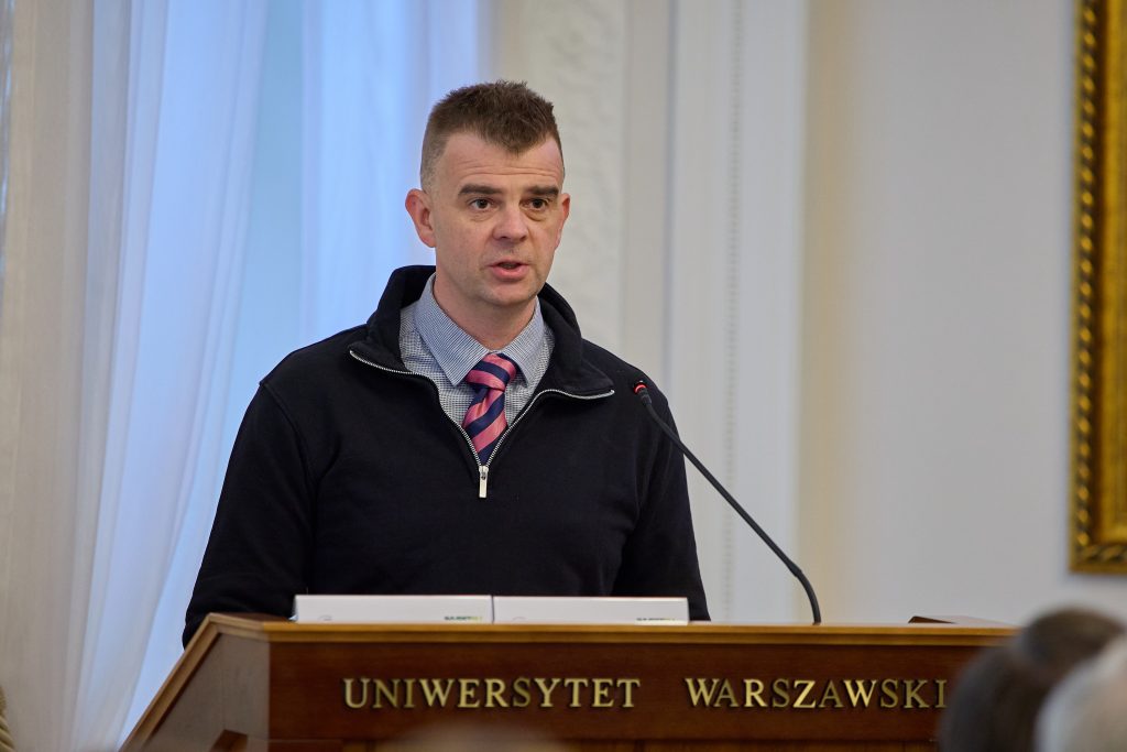 Prof. Sambor Grucza emphasised the role of three aspects in the development of the university: digitisation, improving employee skills and European university alliances – in the case of the University of Warsaw, this refers to the 4EU+ Alliance. He spoke about electronic document circulation, e-files for employees, electronic signatures and training programmes, including Akademia Dziekanów (ENG: the Academy of Deans) and Akademia Liderów (ENG: the Academy of Leaders).