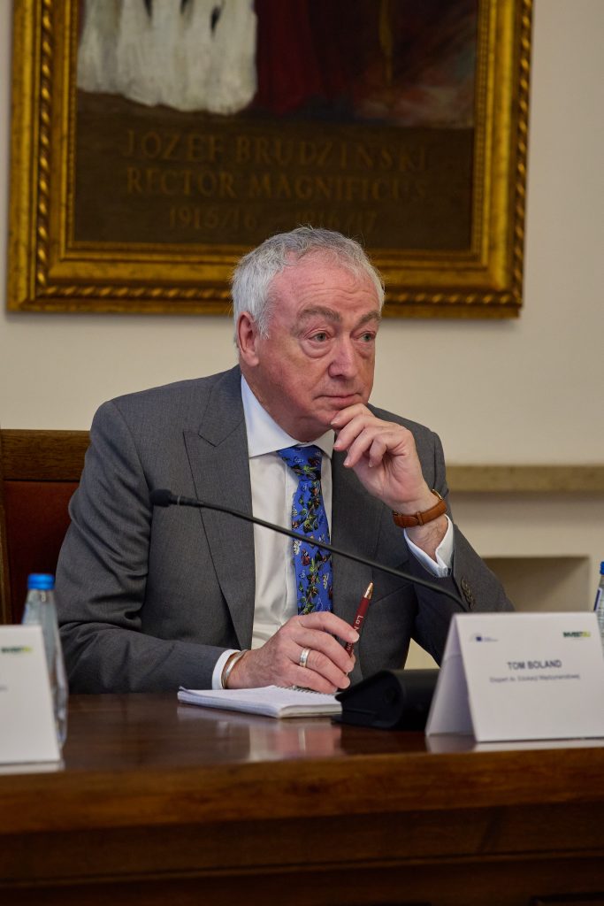 Robert Grey, the UW Chancellor, Prof. Zbigniew Pastuszak, Vice-Rector for Development and Business Cooperation at Maria Curie-Skłodowska University in Lublin, and Paweł Paszczyk, an expert on higher education financing at the EIB, discussed overcoming barriers, effective financing models, creative partnerships and the role of consulting. The discussion was moderated by Prof. Dominik Antonowicz.