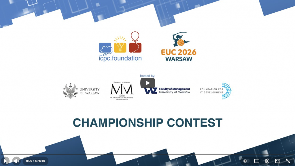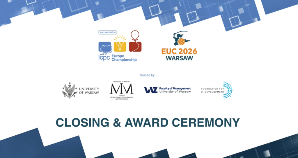“This year, the international team of judges prepared an exceptionally difficult set of tasks, posing a serious challenge even for the best enthusiasts of algorithmic problem solving,” says Prof. Krzysztof Diks from the Faculty of Mathematics, Informatics and Mechanics at the University of Warsaw, the Director of ICPC EUC 2026.