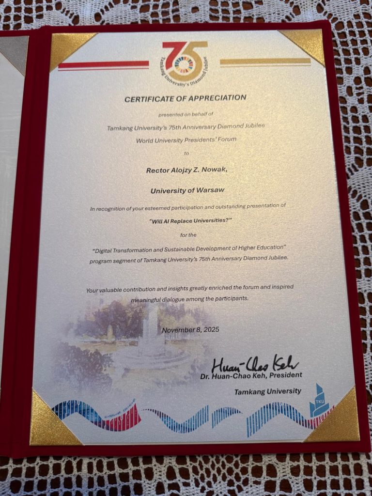 The event provided an opportunity to summarise the long-standing relationship between the University of Warsaw and Tamkang University and to discuss the further development of joint research and teaching projects.