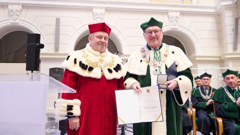 During the ceremonial session of the Senate of the Warsaw University of Technology, Prof. Alojzy Z. Nowak handed over the University of Warsaw Medal to Prof. Krzysztof Zaremba. In his address, the Rector of the University of Warsaw emphasised the long-standing collaboration between the two institutions, its tangible outcomes, and the significance of joint academic and educational initiatives.