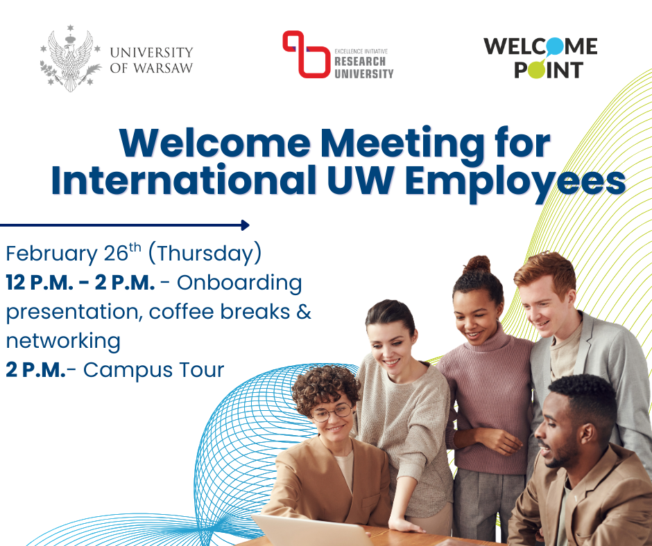 Welcome Point is organising a meeting for all new international employees of the University of Warsaw. The meeting will be held on 26th February. The participants will be introduced to the structure and functions of the University as well as the most important formalities related to life in Warsaw.